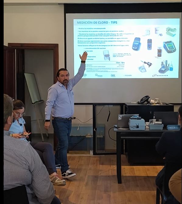 Con apoyo técnico del proveedor, el Ing. Jaime Rappy, especialista de HACH-LATAM – Jenck, dictó contenidos teóricos sobre la importancia de la medición en campo y la determinación de parámetros clave en captación superficial: pH, conductividad, turbidez y cloro libre. Analistas de laboratorio y supervisores de procesos revisaron procedimientos operativos relacionados con muestreo en captación y salida de planta, muestreo en paralelo con el ente regulador, condiciones de preservación, errores frecuentes, y registro y trazabilidad de datos.