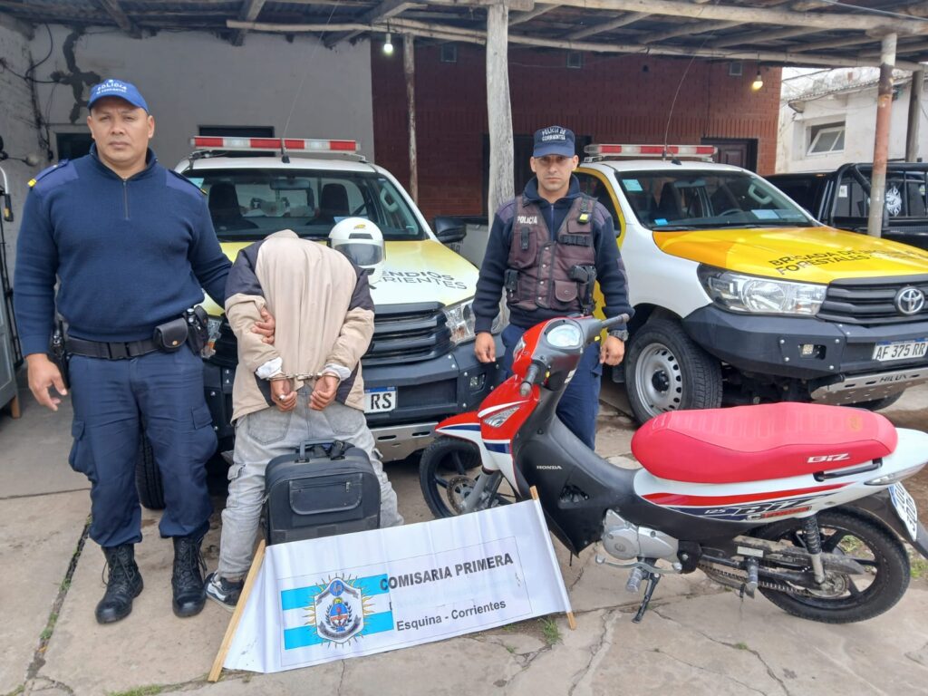 Un rápido despliegue policial con un operativo cerrojo permitió a la Policía de Esquina recuperar en horas de la siesta de este martes sobre la Ruta Nacional 12, una motocicleta que había sido sustraída ratos antes frente a un domicilio de calle Constitución y Santa Rita, de la ciudad.
