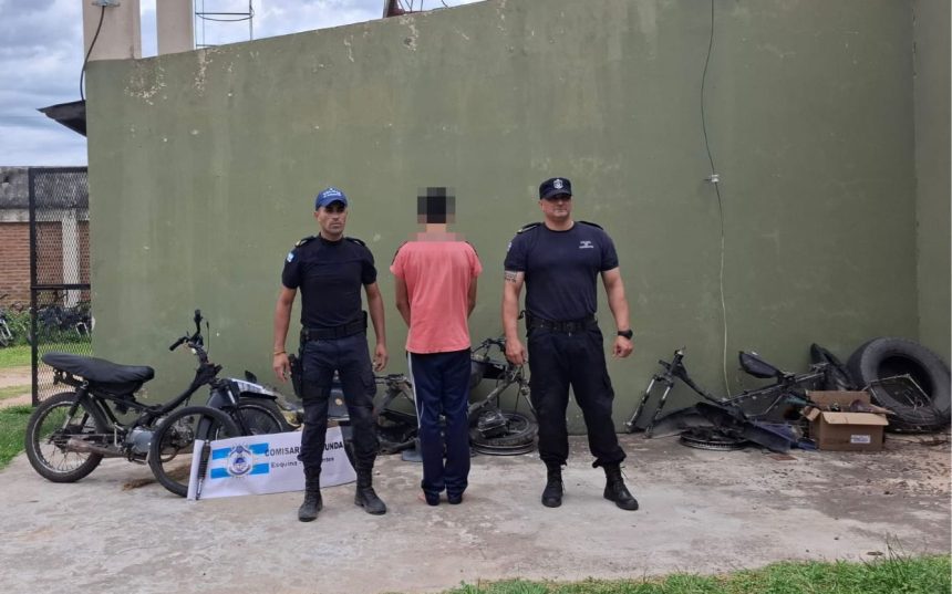 El procedimiento se llevó a cabo en una vivienda ubicada sobre avenida Juan Ramón Vidal, entre José Hernández y Río Corriente, arrojando resultado positivo. En el lugar se halló la motocicleta denunciada como sustraída, además de otras partes de motos, algunas de las cuales estaban enterradas en el fondo del domicilio.