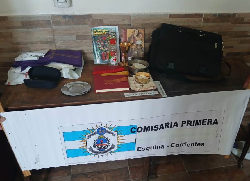 La Policía de Corrientes logró esclarecer el hecho de hurto denunciado el pasado miércoles por la tarde en la Parroquia Santa Rita de Casia de la ciudad de Esquina, donde habían sustraído elementos litúrgicos pertenecientes al padre Miguel Galeano.