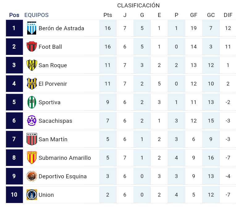 Con esta victoria, Berón de Astrada alcanza lo más alto de la tabla, a la espera de lo que ocurra con Foot Ball, que jugará su partido este domingo.