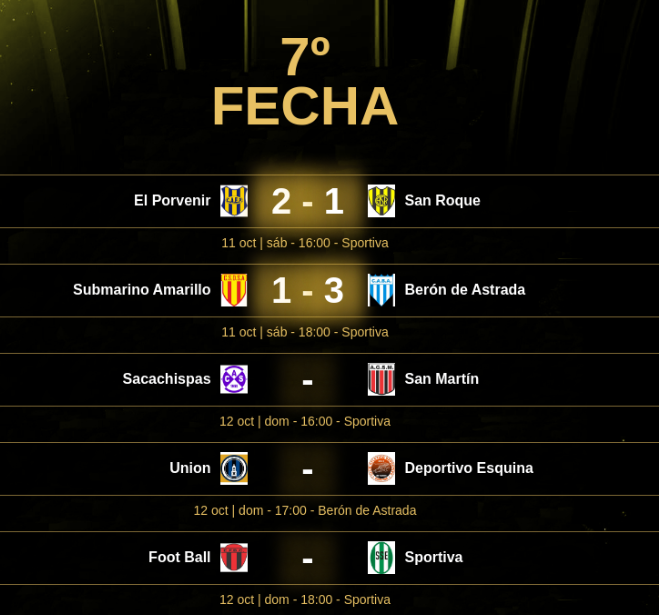 La jornada sabatina de la 7ª fecha del Torneo Clausura 2025 dejó emociones y goles en la cancha de Sportiva, donde El Porvenir y Berón de Astrada se quedaron con importantes victorias.