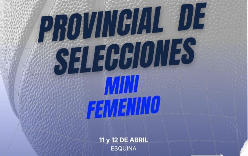 Este sábado y domingo, en Esquina, se jugará el Provincial de Selecciones de la categoría Mini de la rama femenina. Cuatro seleccionados irán por el título del certamen organizado por la Federación de Básquet de la Provincia de Corrientes (FBPC).