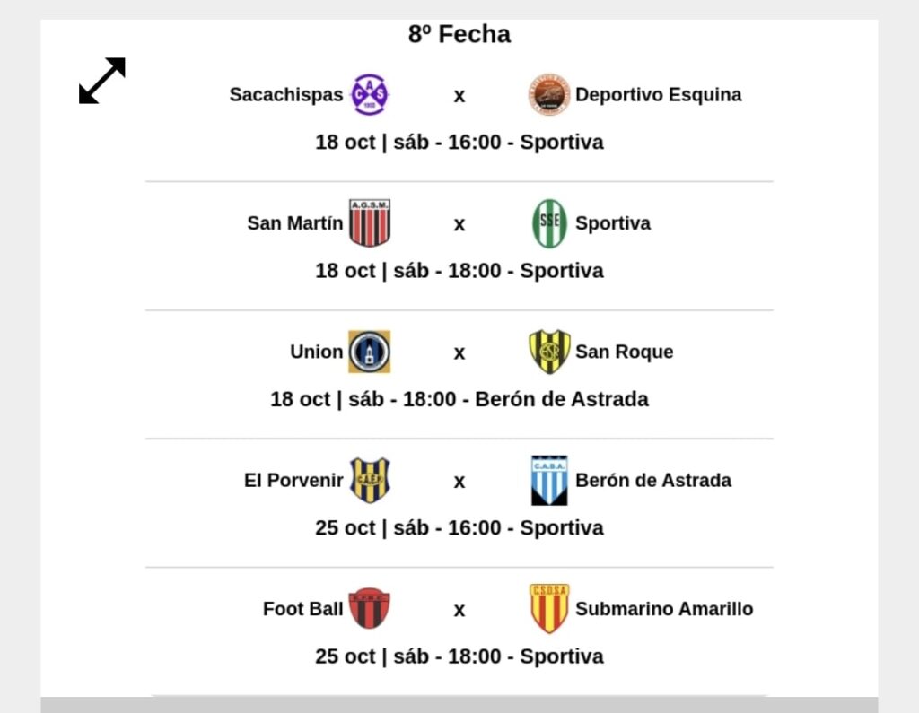 La Liga Esquinense de Fútbol programó la octava fecha del Torneo Clausura 2025 – Copa Vida en dos jornadas: sábado 18 y sábado 25 de octubre, debido a la celebración del Día de la Madre y las elecciones nacionales.