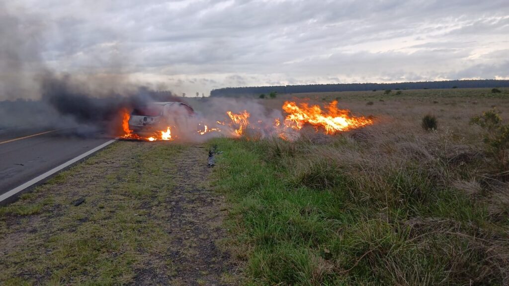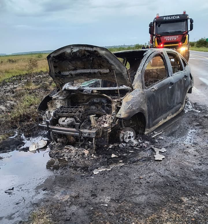 Al arribar, los efectivos constataron que un automóvil Citroën C3, dominio MUU 891, había colisionado con un animal silvestre (carpincho) que se cruzó sobre la calzada. A raíz del impacto, el vehículo se incendió por completo, resultando con daños materiales totales.