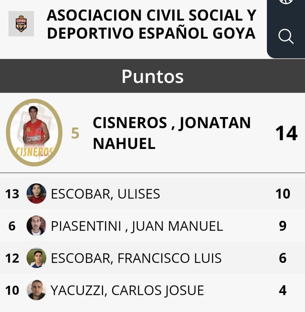 Por el lado del conjunto visitante, el más efectivo fue Jonathan Nahuel Cisneros, autor de 14 puntos, seguido por Ulises Escobar (10) y Juan Manuel Piasentini (9).