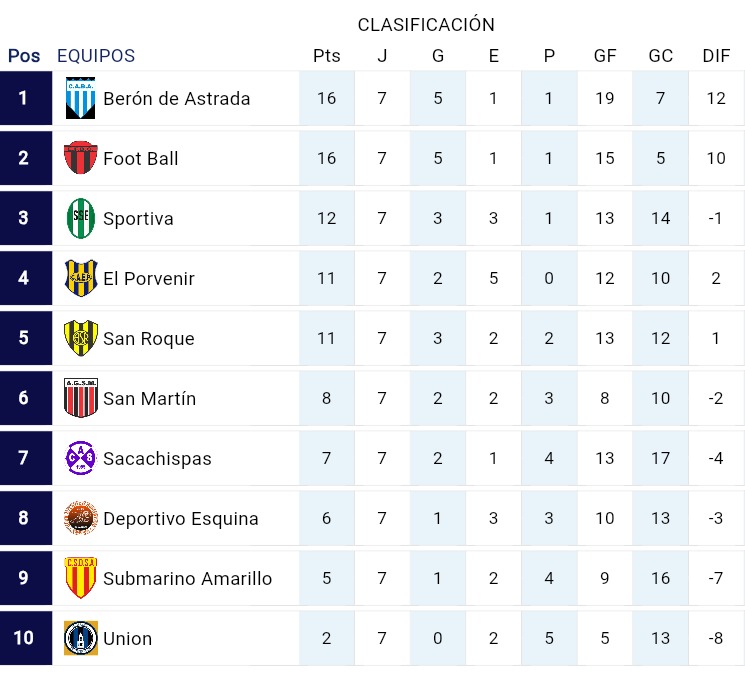 Con esta victoria, Sportiva suma tres puntos fundamentales que lo mantienen en zona de clasificación (3.º con 12 unidades) y le dan un envión anímico clave en el tramo decisivo del torneo.