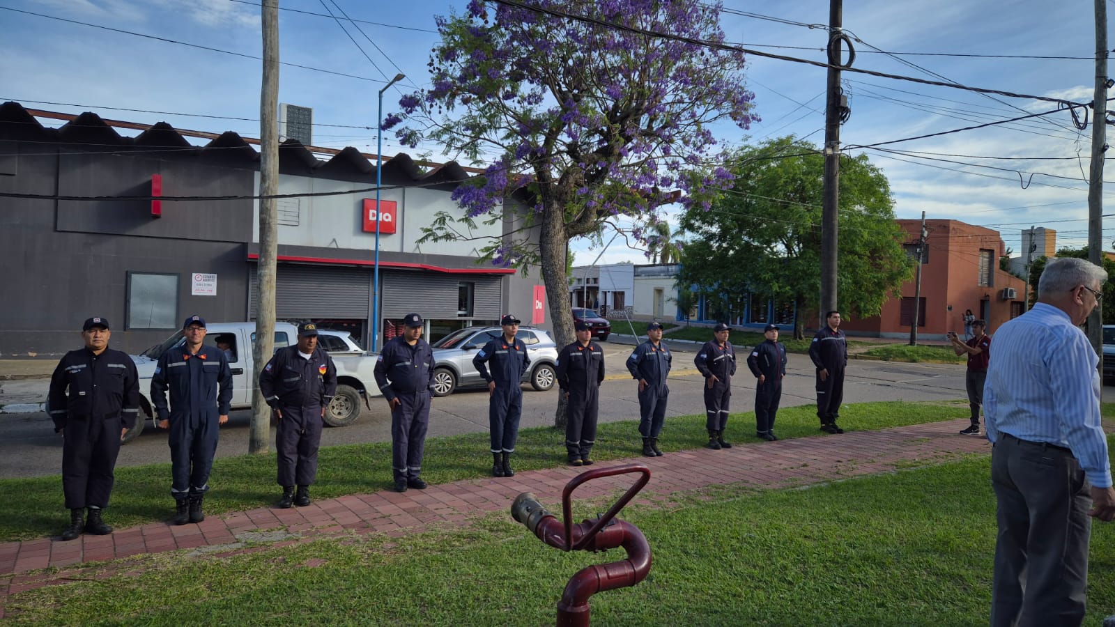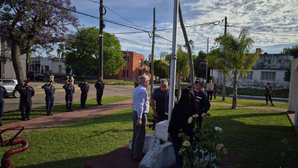 En un acto simbólico y solemne, el presidente de la comisión directiva, Raúl Cardozo, junto al segundo jefe del cuerpo activo, Antonio Zárate, integrantes de la comisión directiva, Carlos Matto y la concejal Luciana Mendoza, izaron la Bandera Nacional ante la formación de los bomberos, marcando así el inicio de las celebraciones.