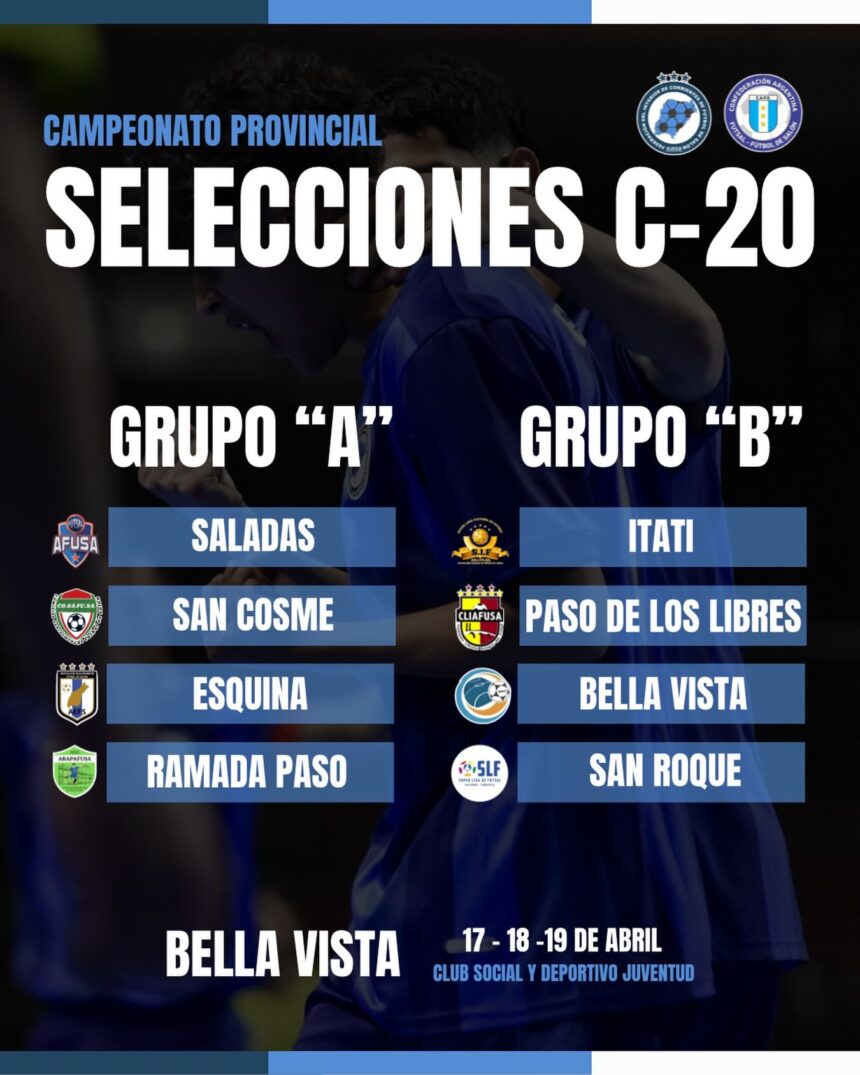Quedaron definidas las zonas del Campeonato Provincial de Selecciones C20 Bella Vista 2026