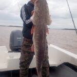 El surubí, que casi alcanzaba el ancho de la lancha, fue fotografiado y liberado inmediatamente después.