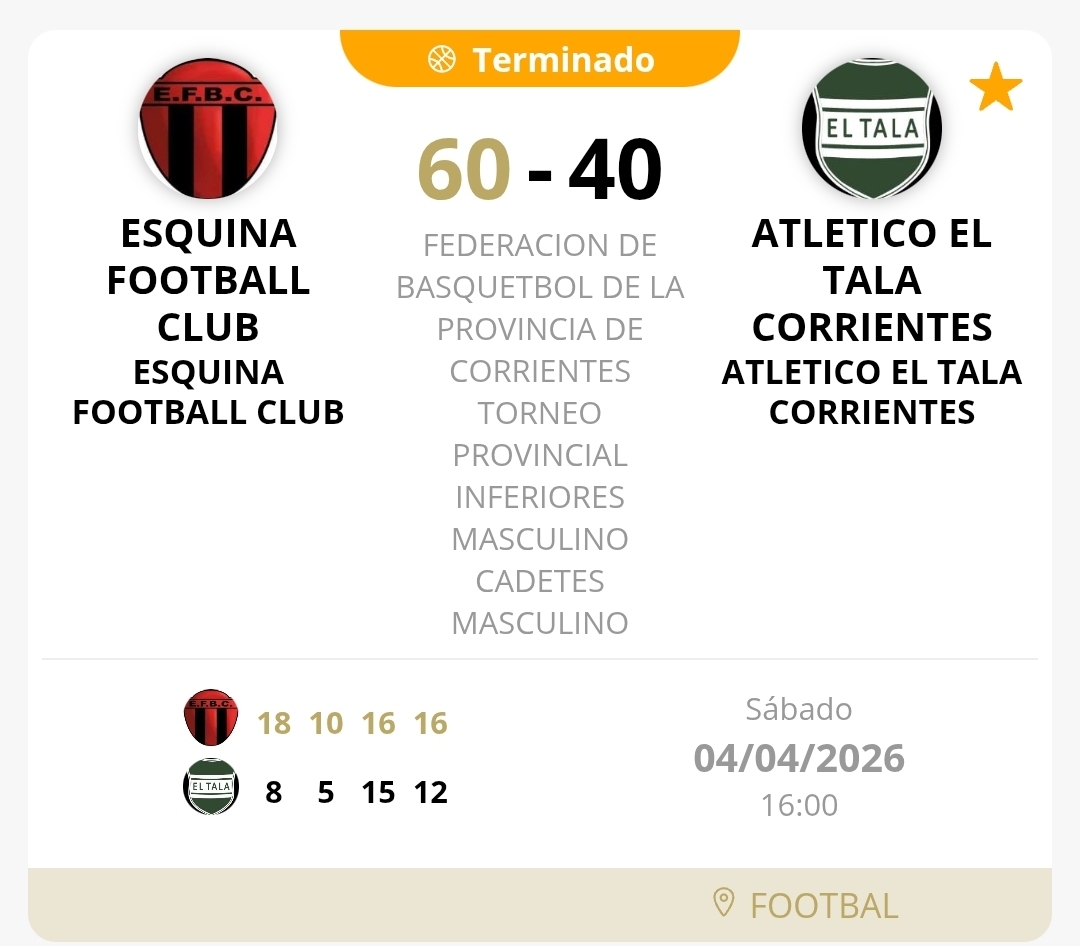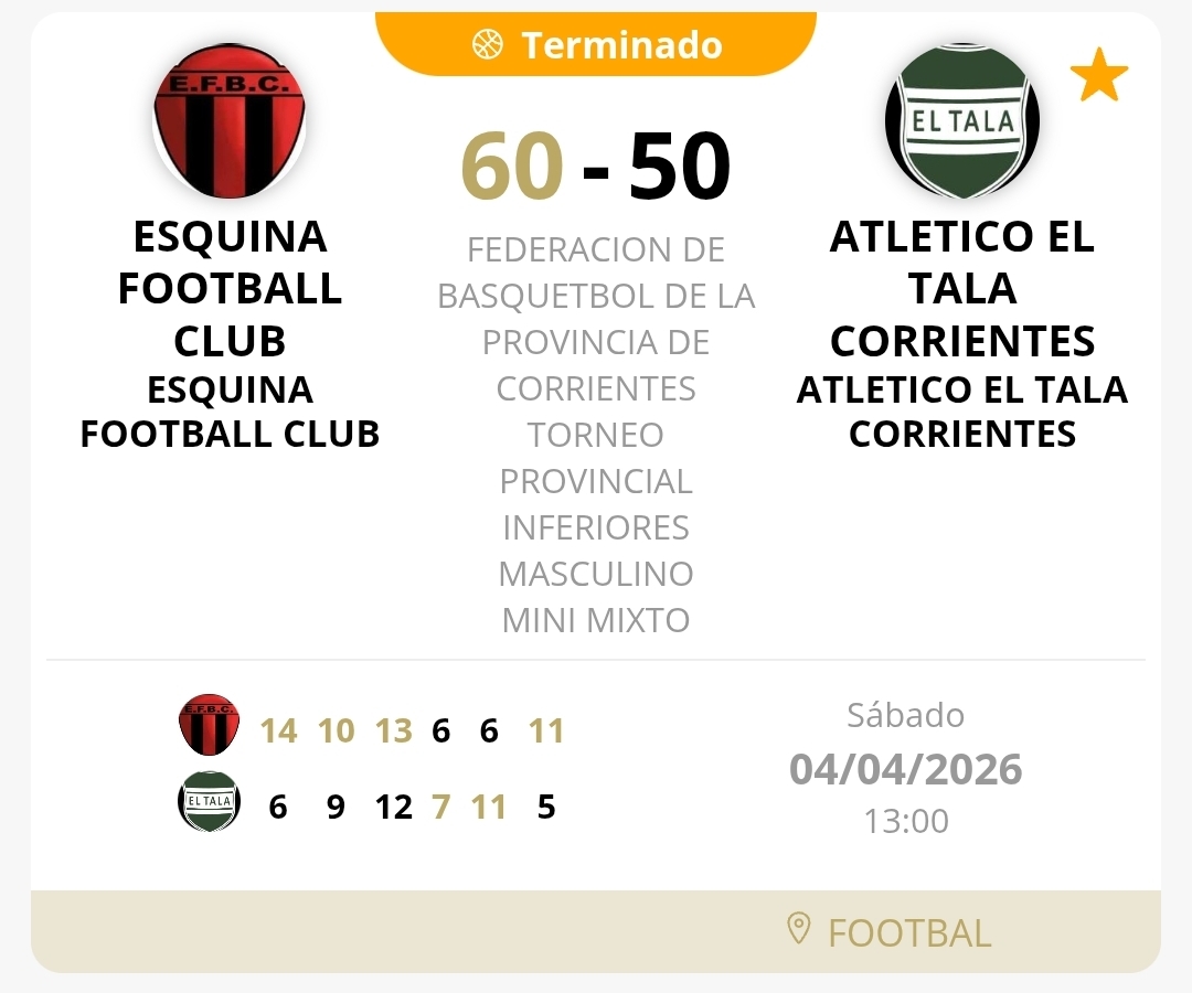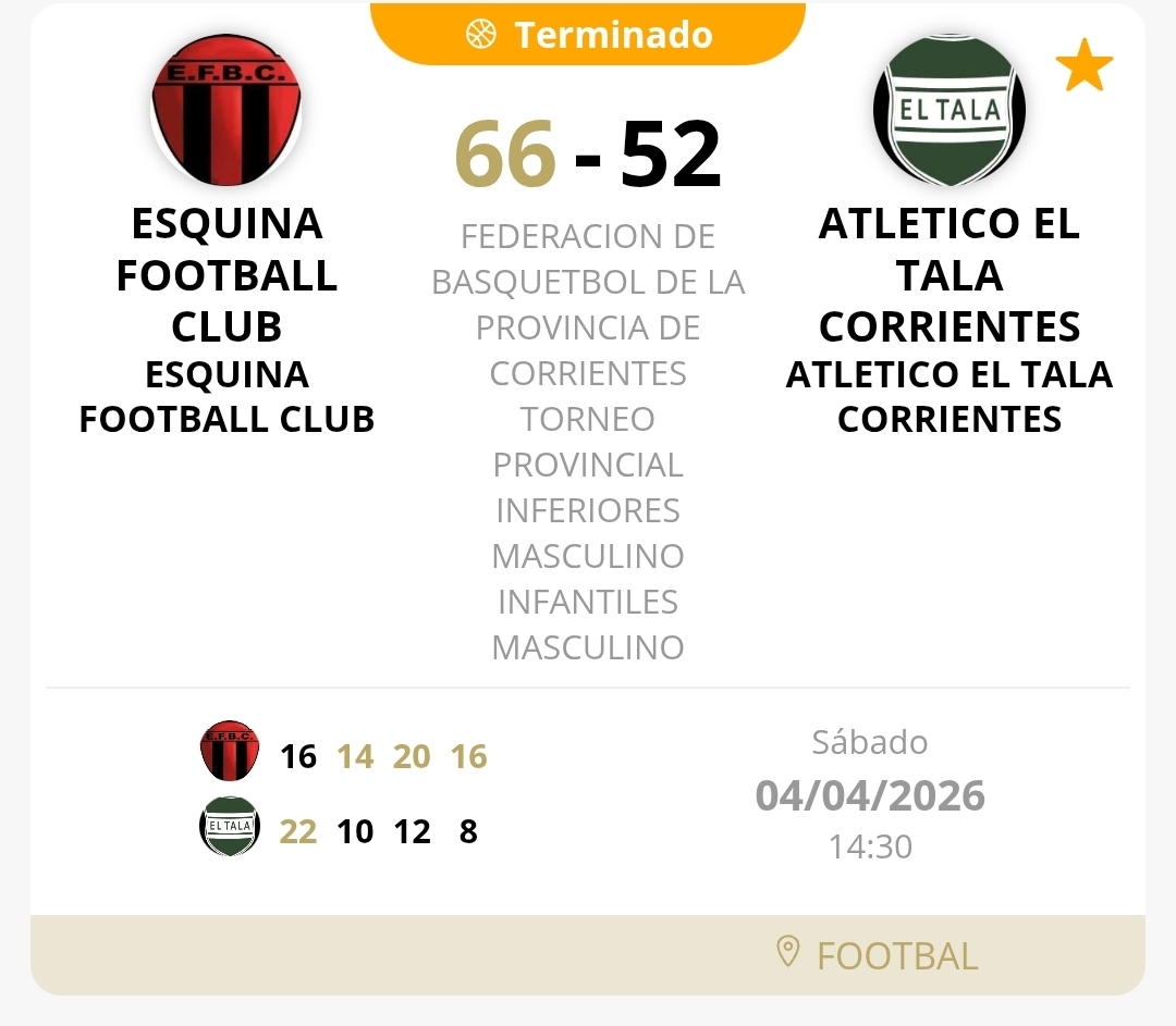 En el marco del Torneo Prefederal de Básquetbol de categorías formativas, organizado por la Federación de Básquetbol de la Provincia de Corrientes, Foot Ball recibió el sábado 4 en su estadio a Atlético El Tala de la ciudad de Corrientes, en una jornada cargada de competencia y buen nivel deportivo.