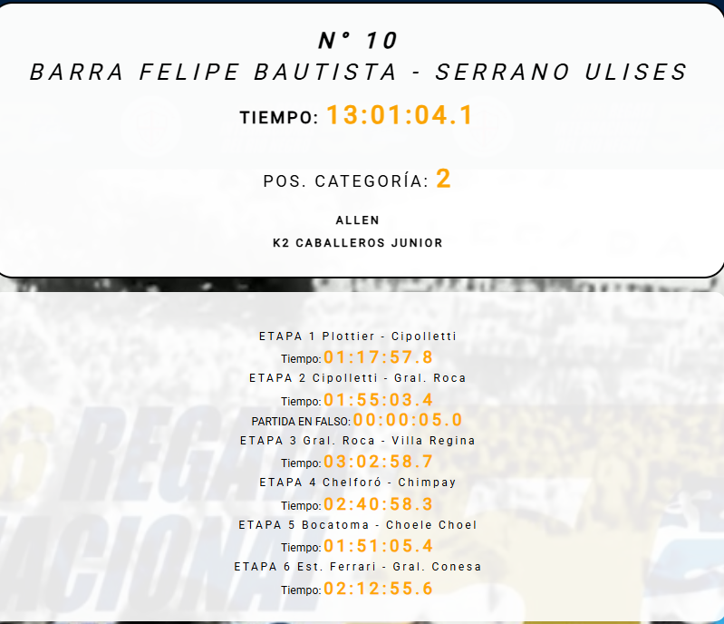 En este contexto de alto rendimiento, Ulises Serrano continúa sumando experiencia y protagonismo en la Dupla K2 Caballeros Junior, representando a la nueva generación de palistas que buscan dejar su huella en una regata histórica.