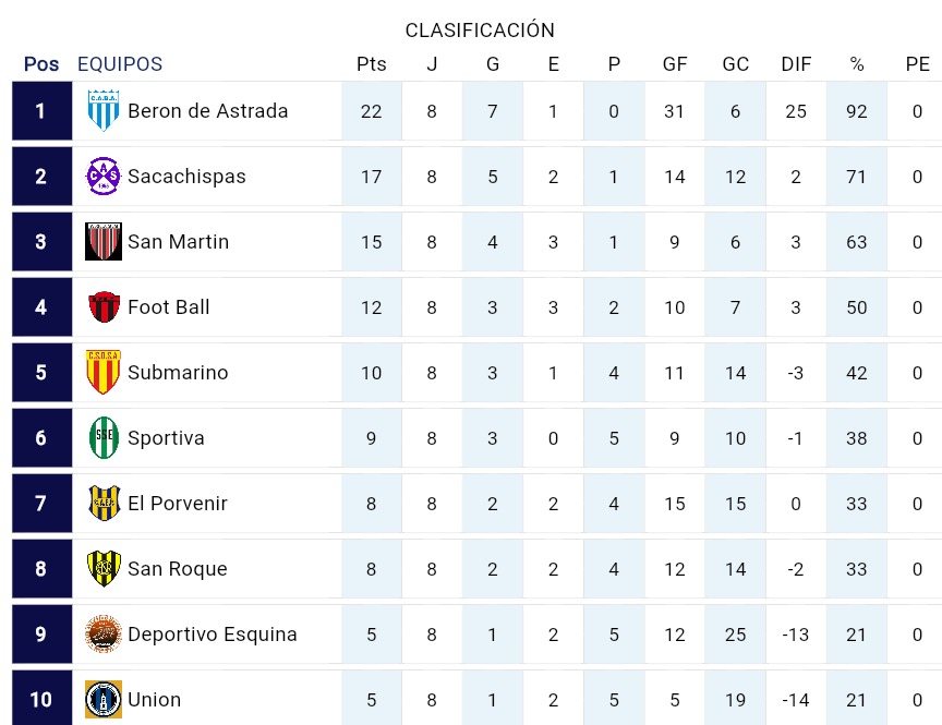 - 1° Berón de Astrada (22 pts): Ya aseguró el 1° puesto.