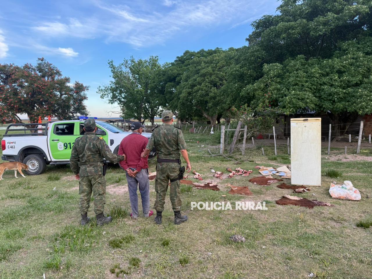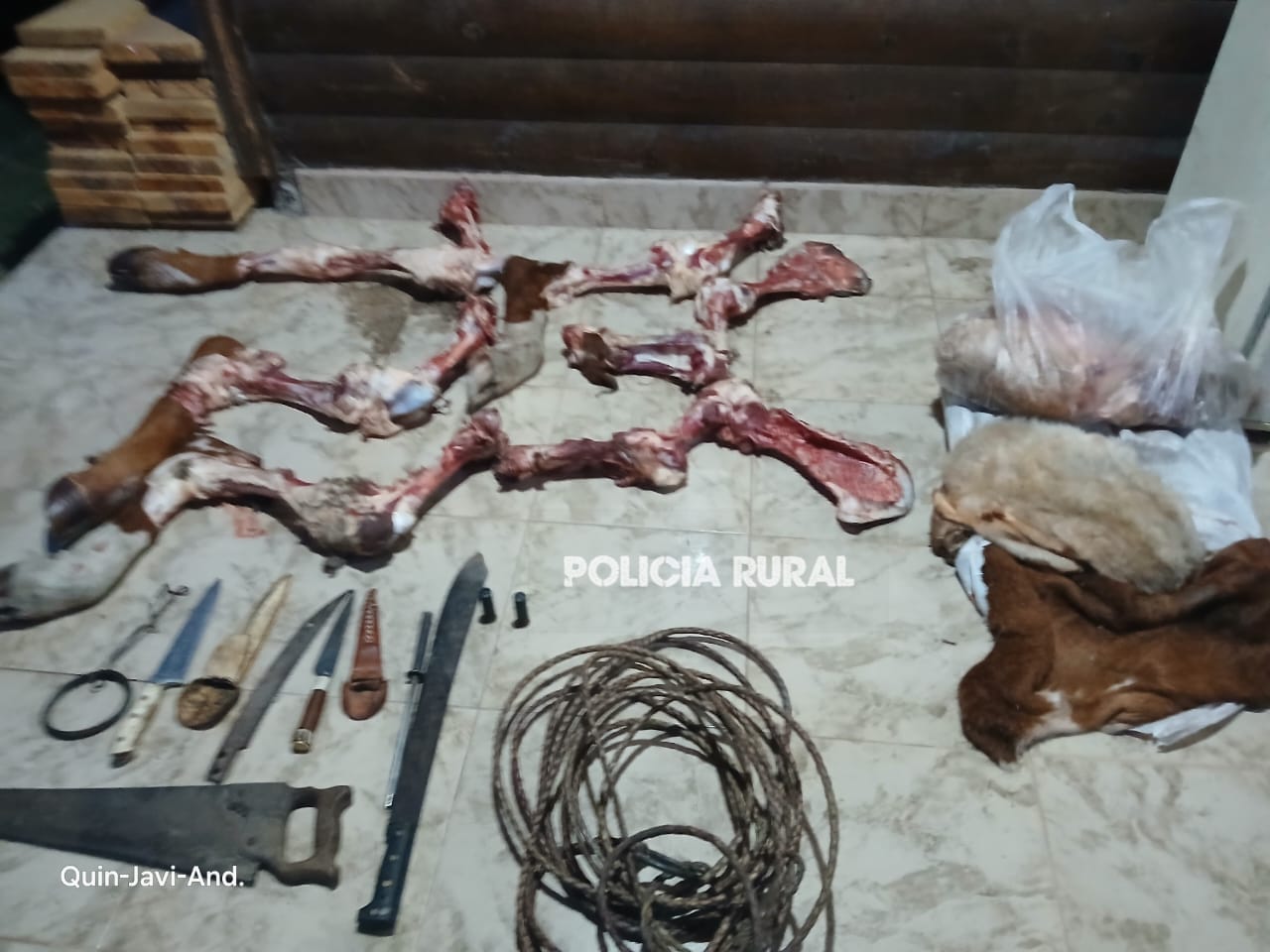 El procedimiento, encabezado por el comisario mayor Diego Duarte, se llevó a cabo el 20 de octubre, tras el hallazgo de restos de faena de cuatro vaquillas en la estancia Las Dos Hermanas, situada en la Primera Sección de esa zona rural.