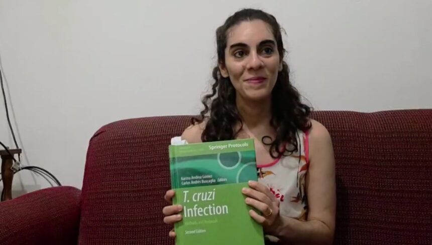 La investigadora explicó que la obra reúne diferentes metodologías científicas utilizadas para analizar al parásito responsable de la enfermedad, transmitida principalmente por la vinchuca infectada con Trypanosoma cruzi.