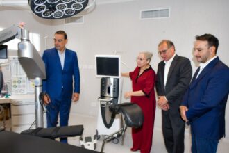 Allí, junto a su Gabinete, presenció el paso de alumnos, fuerzas de seguridad y demás actores de la comunidad.