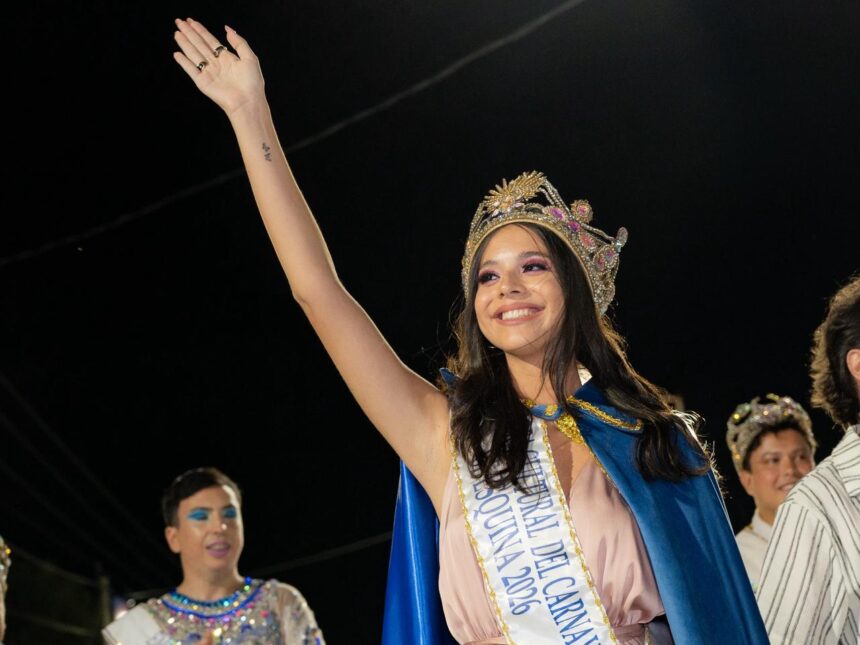 La joven Valentina Urquiza Lobo fue consagrada como flamante embajadora cultural del Carnaval de Esquina, en una edición que marcó un antes y un después por su convocatoria y nivel competitivo. Reina de la comparsa Yasí Berá el año pasado, este 2026 la encuentra asumiendo un nuevo desafío: representar a la ciudad como embajadora, y además con la posibilidad de competir a nivel provincial en el Carnaval Nacional de Corrientes.