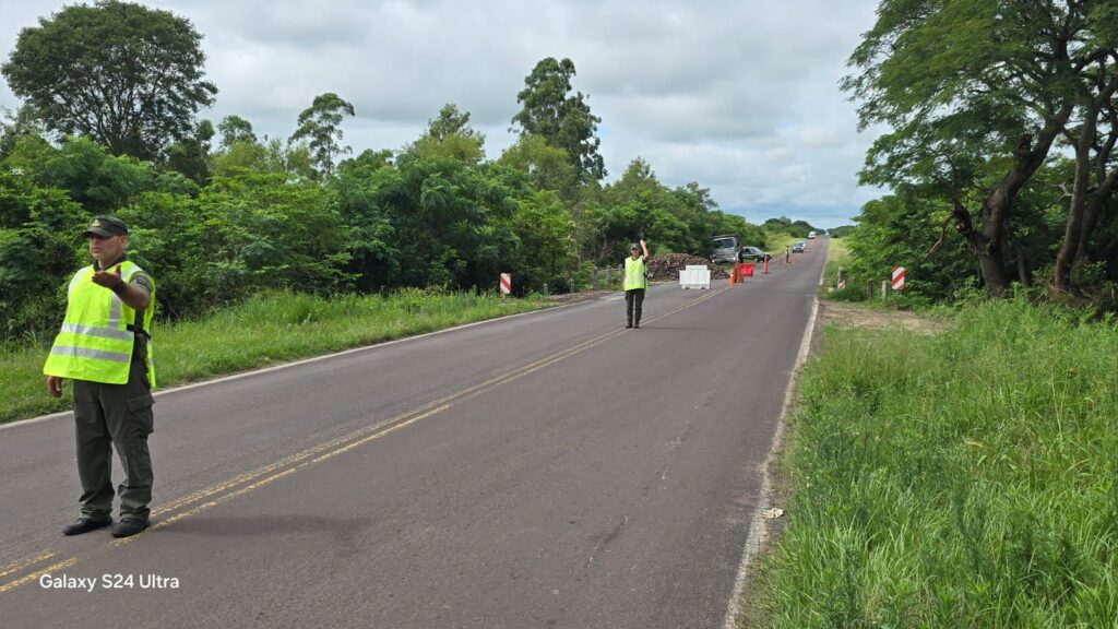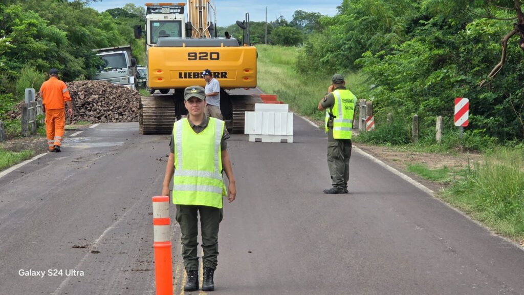 En el lugar también presta colaboración Gendarmería Nacional, encargada de controlar y ordenar el tránsito vehicular, con el objetivo de garantizar la seguridad de quienes circulan por el sector afectado.