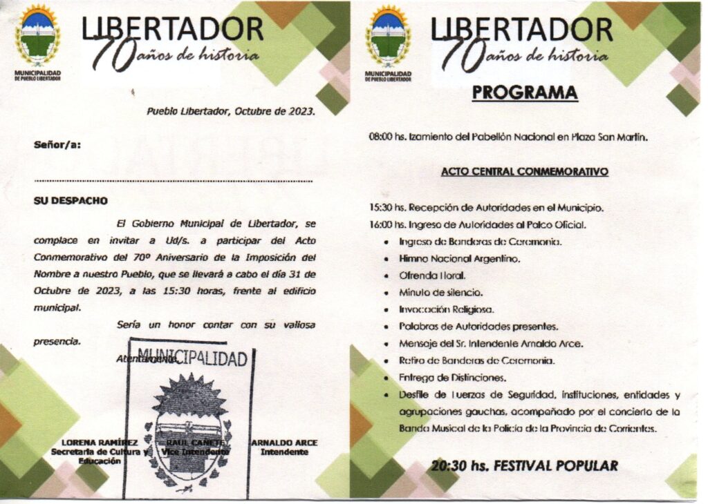 La conmemoración será el 31 de octubre de 2023, el mismo día que le fue impuesto el nombre in situ en el año 1953 por las autoridades y de acuerdo a la Ley N° 1779 del 18 de agosto de 1953.